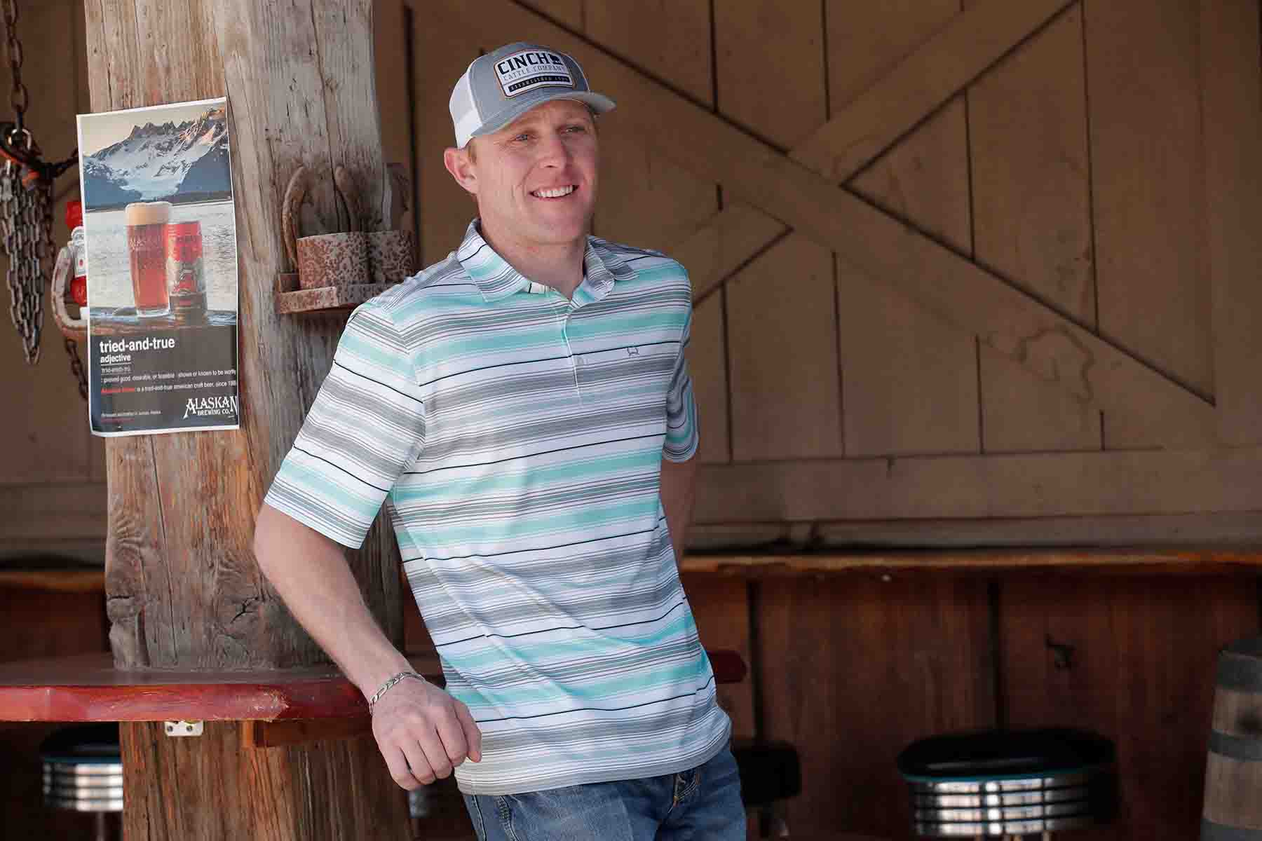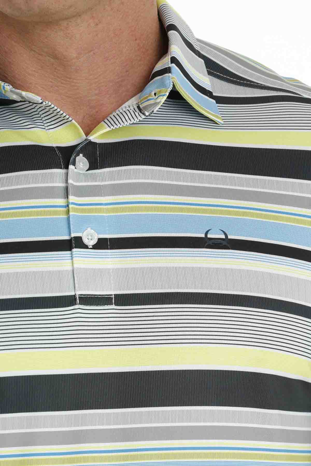 Step up your polo game with the Arenaflex Short Sleeve Striped Multi Polo by Cinch. Made with performance ArenaFlex fabric, this short-sleeved polo features a stylish striped design across the chest and offers wrinkle resistance, moisture-wicking capabilities, and UV defense. Designed for all-season wear, this lightweight polo is easy to care for with a simple machine wash and tumble dry. Say goodbye to discomfort and hello to effortless style with this must-have polo.