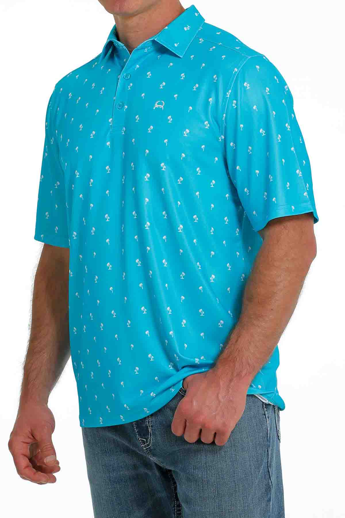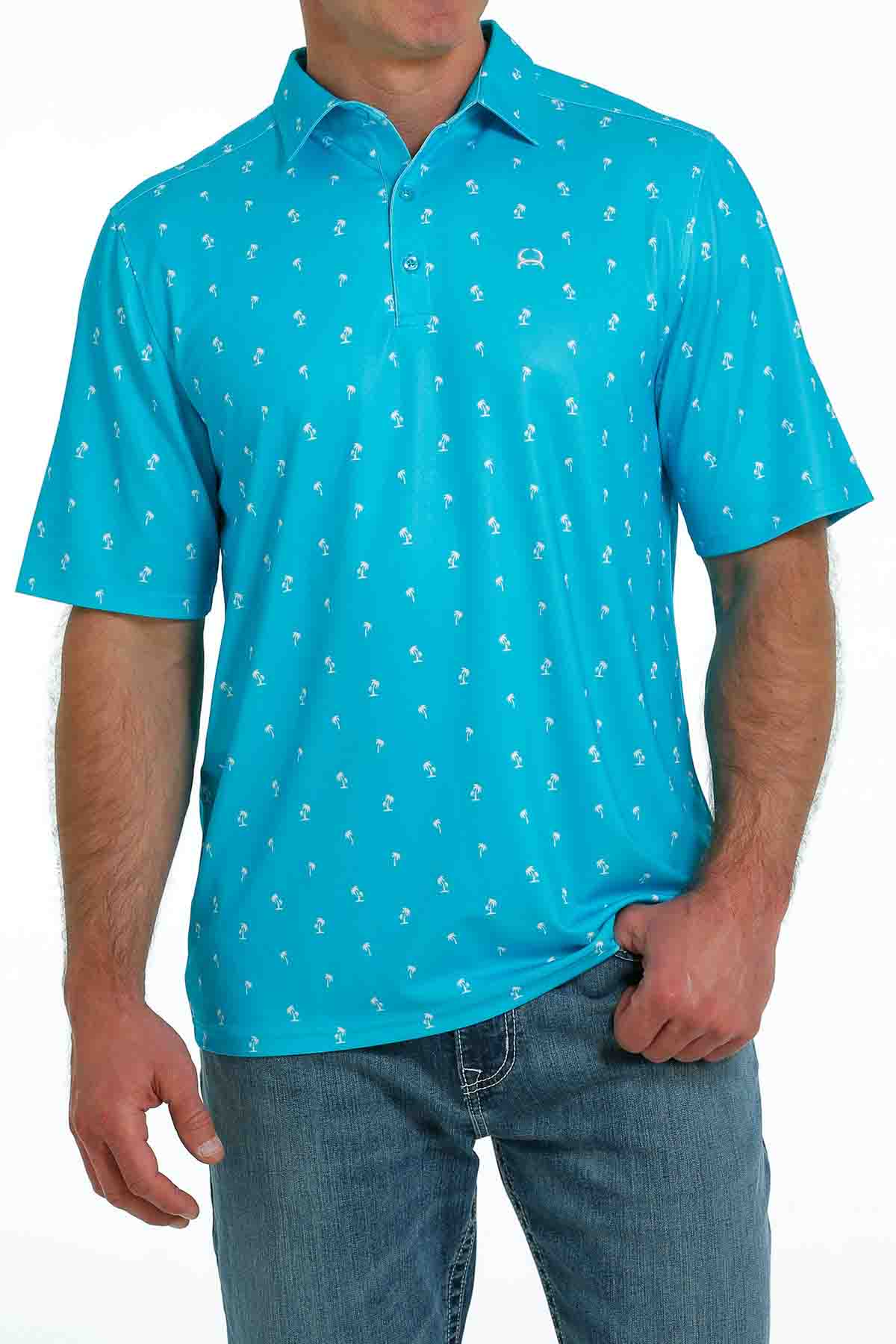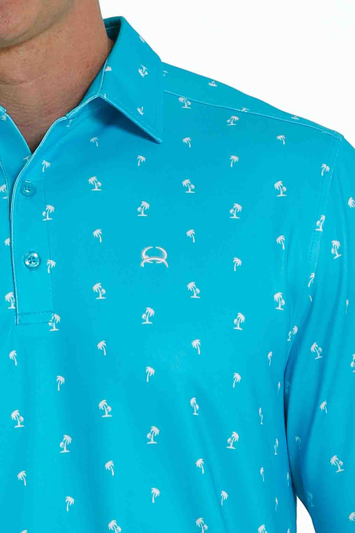 Cinch Men's Arena Flex Polo Blue Palm Tree Print