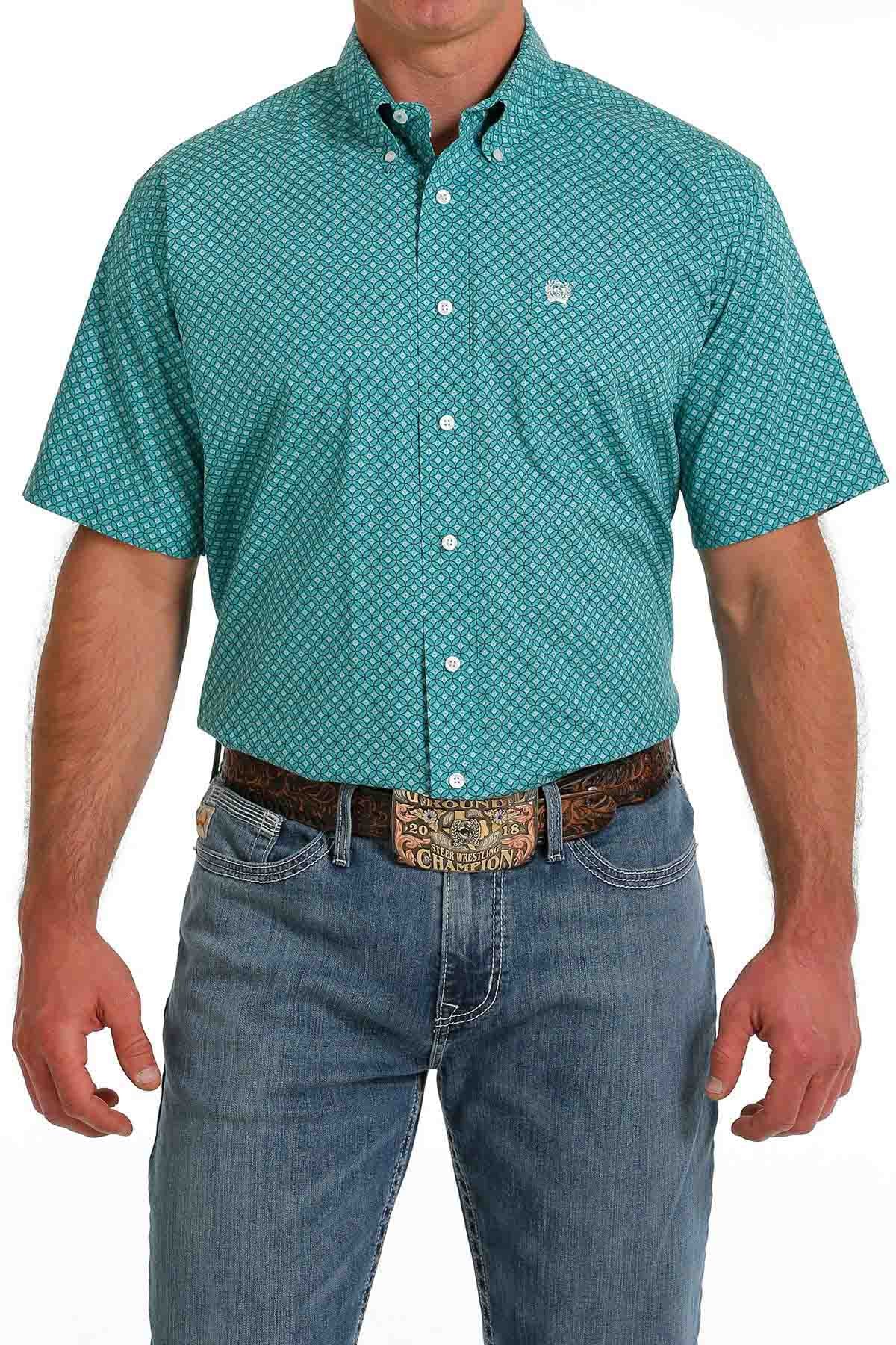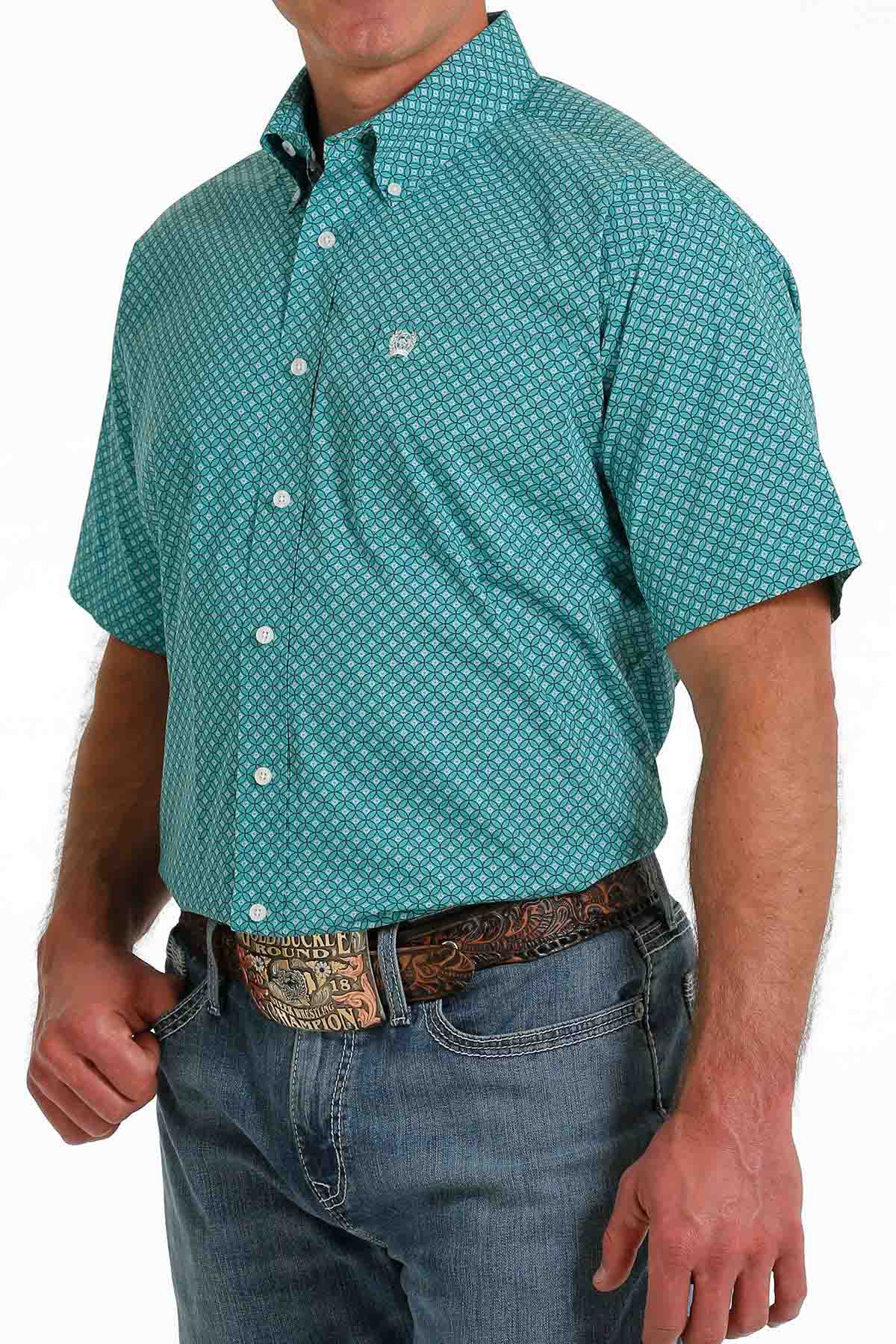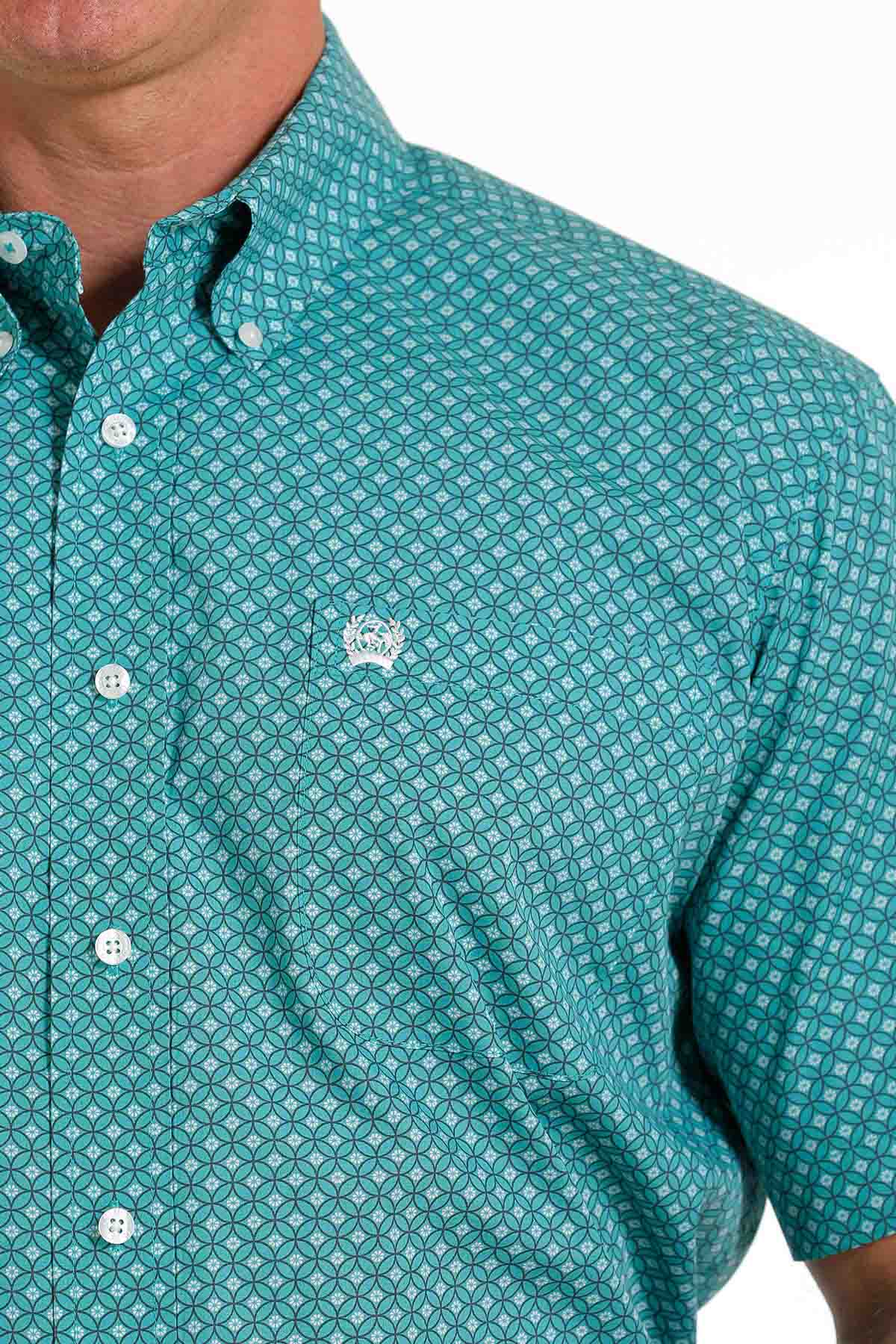 Cinch Men's Medallion Print Button-Down Short-Sleeve Western Shirt in Turquoise-White