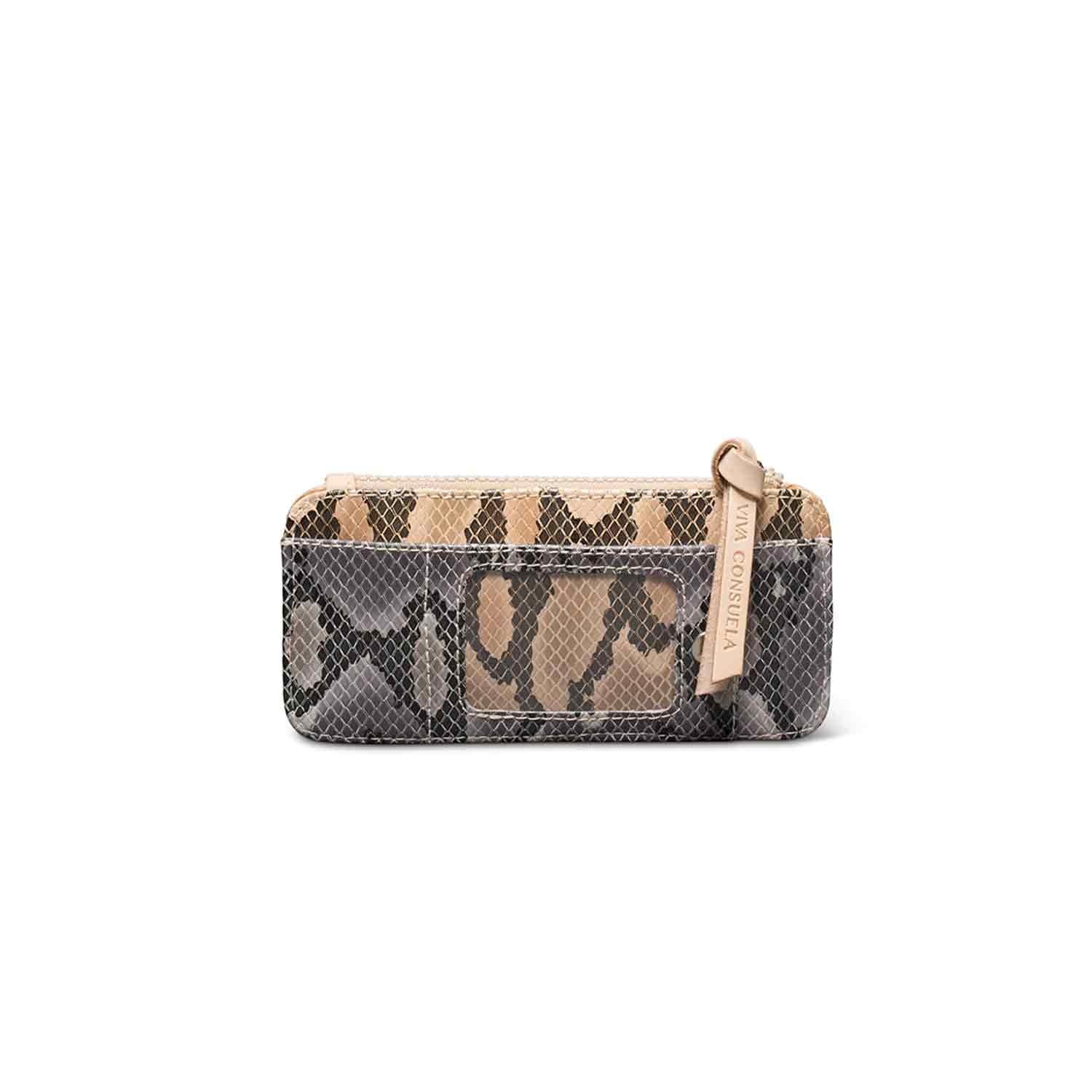 Credit card organizer with cash zipper compartment. 3.625 W x 7.625 H