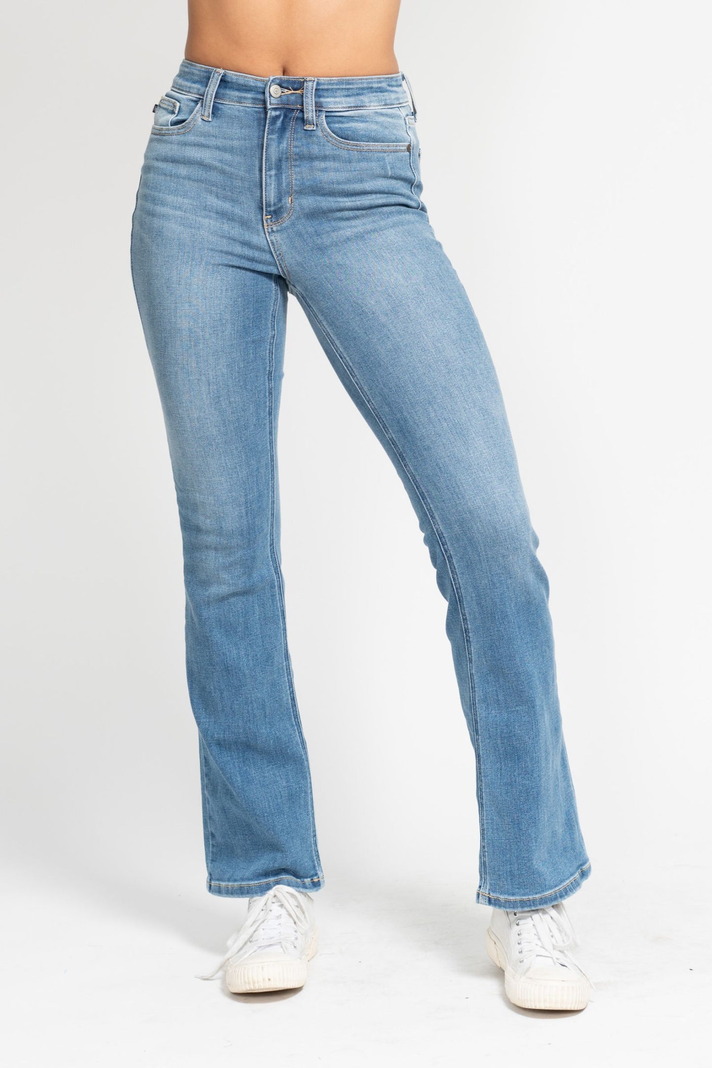 High Waisted Classic Contrast Wash Bootcut Jeans in Medium Blue by Judy Blue