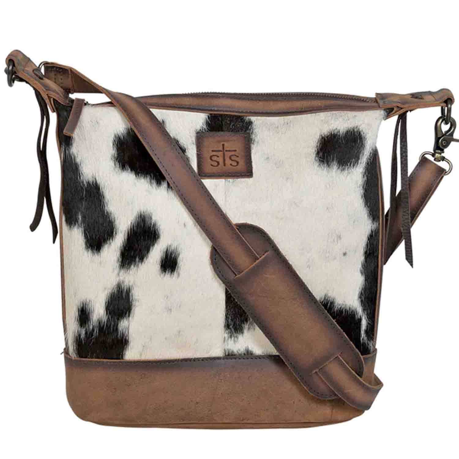 The Cowhide Mail Bag is made from hand selected hair on hide with genuine full grain leather accents.