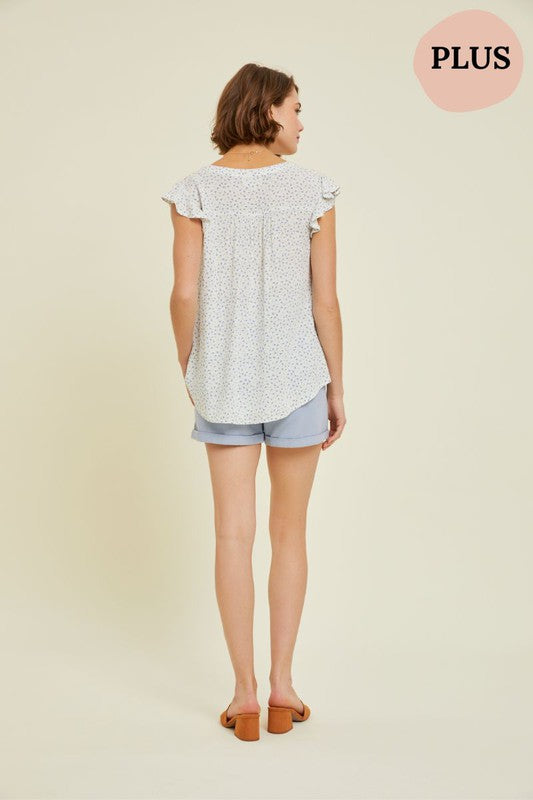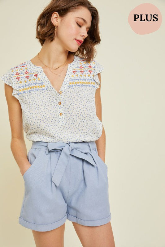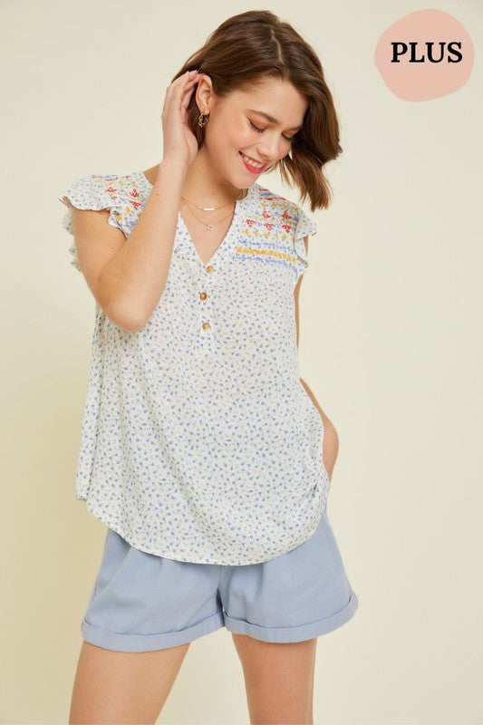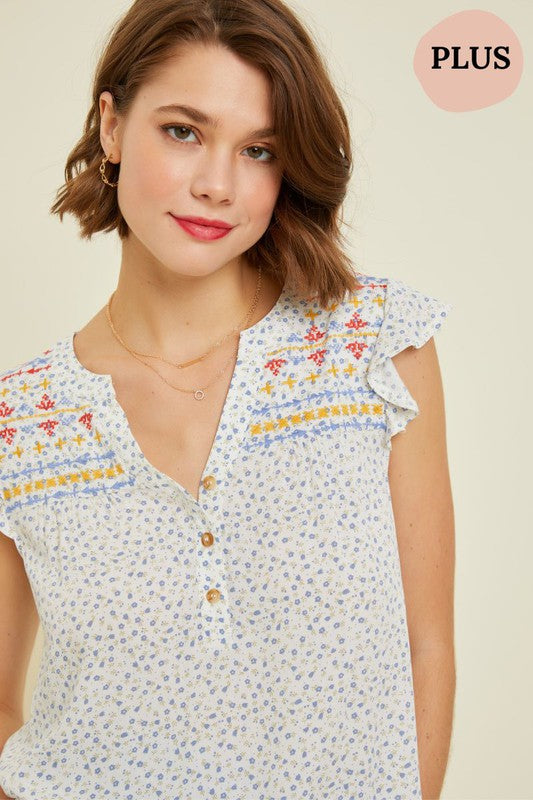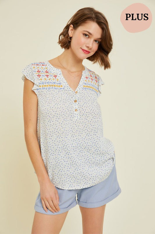 Ditsy Floral Blouse with Embroidered Yoke Plus