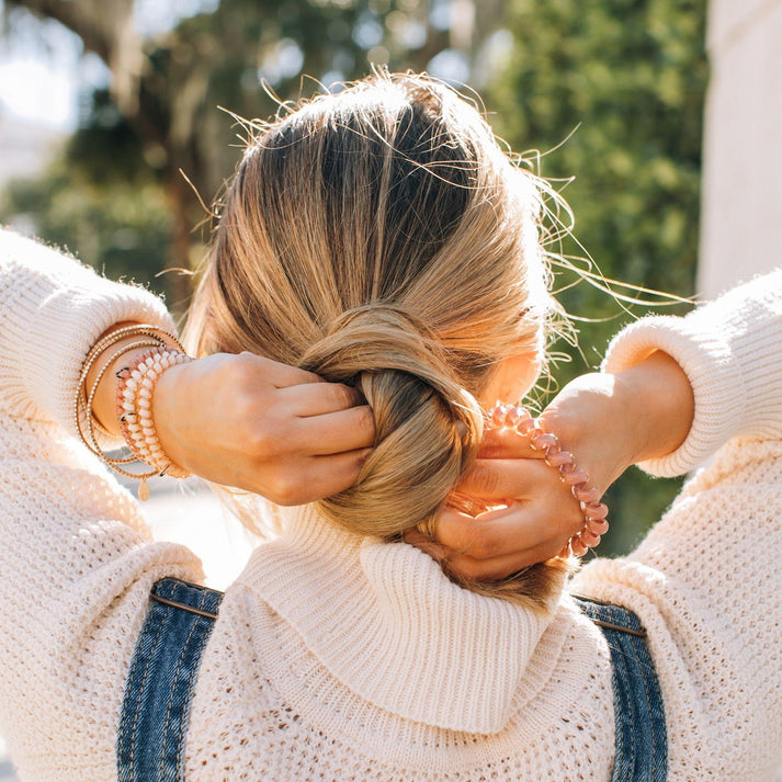 For the Love of Nudes Large Hair Ties in Brown Beige offer a strong grip without damage, doubling as a chic wrist accessory when not in use. Your new favorite hair essentials all year round.