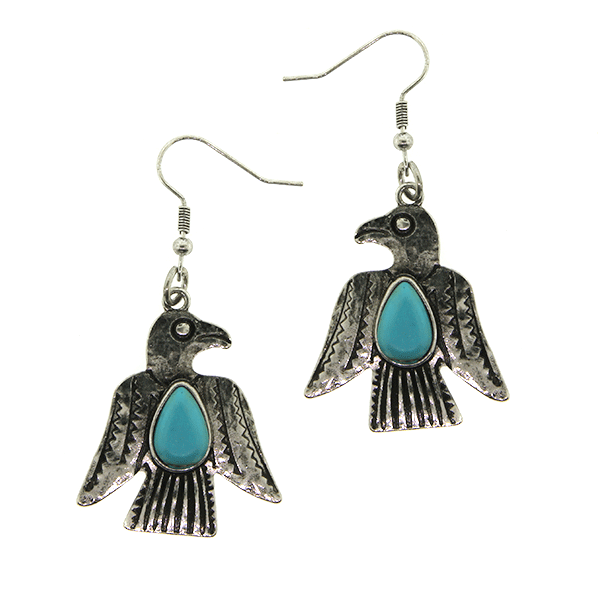 Hook style navajo thunderbird earrings with turquoise stone accent.
