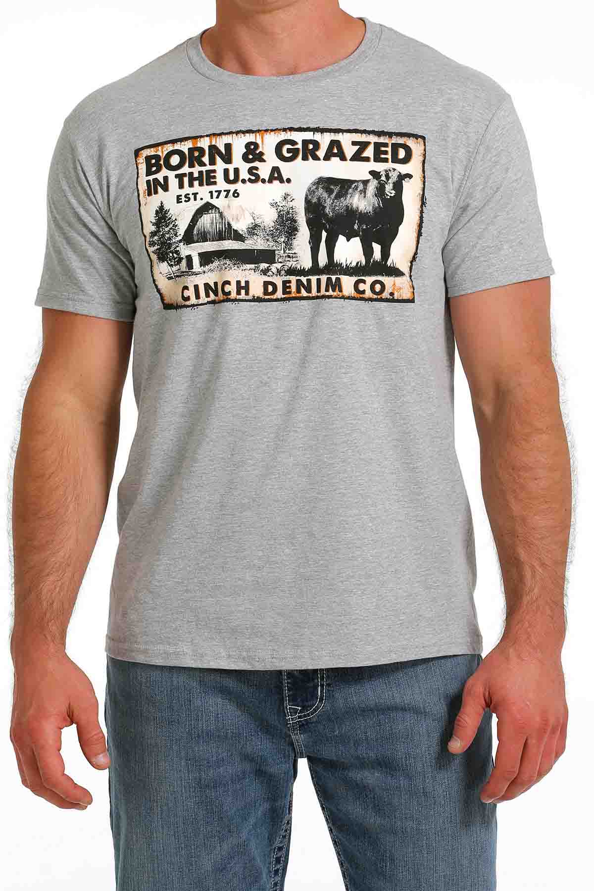 Men's Cinch "Born & Grazed" Heather Gray Graphic T-Shirt
