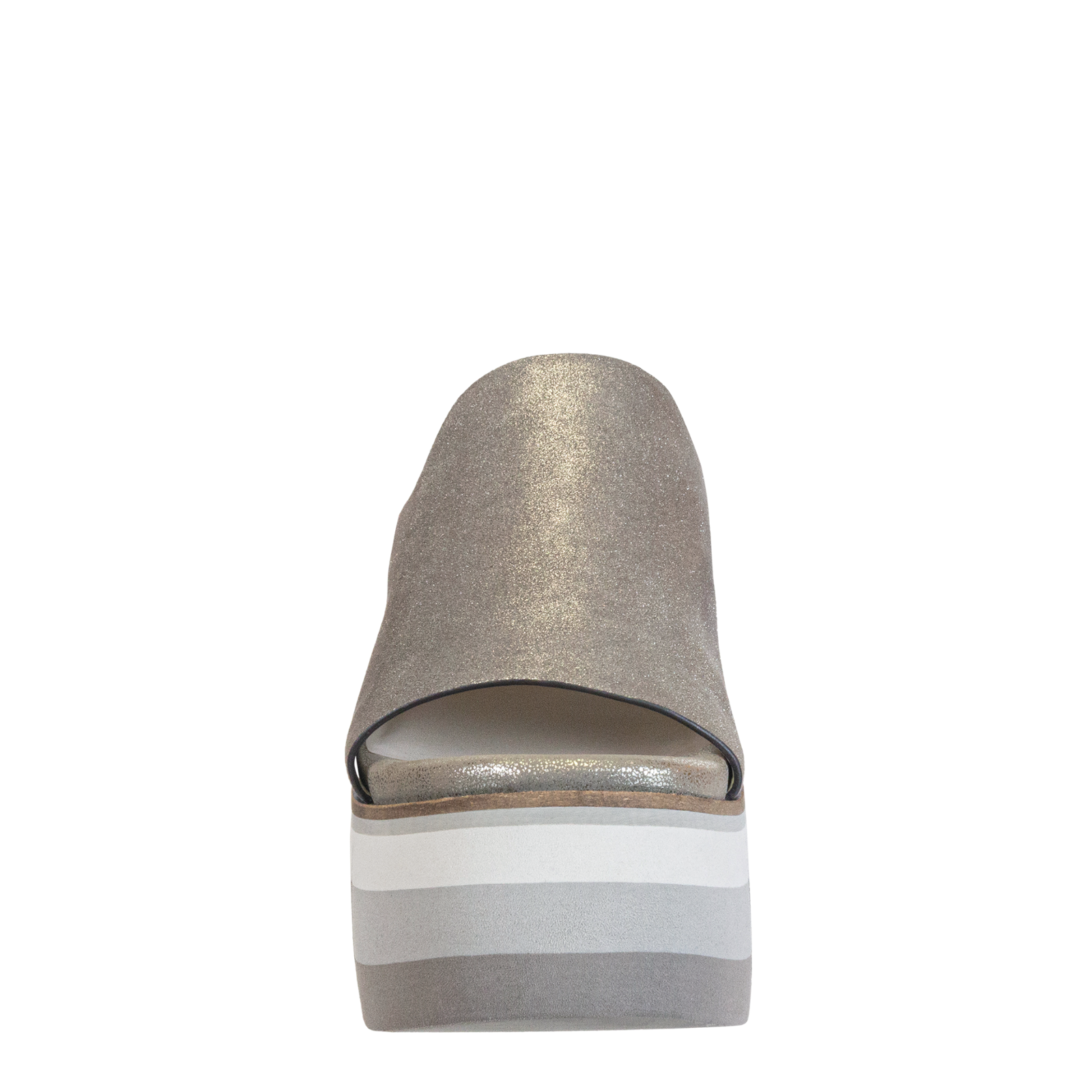 - Layered EVA platform and outsole with flex grooves