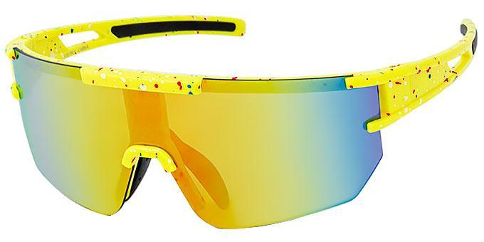 Frames comes in all matte black, white, blue, and yellow with assorted colored paint splatter patterns and black rubber parts.