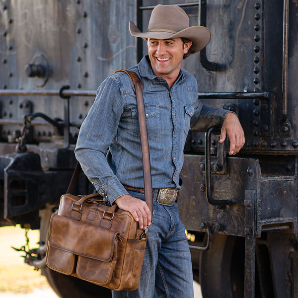 Experience a classical rustic look with the Tucson Messenger! Crafted with waxed and oiled genuine full grain leather, its adjustable and removable crossbody strap, dual rolling leather handles, and multiple pockets and compartments make it your perfect companion on any daring adventure! So, grab yours now and be ready for anything that comes your way!