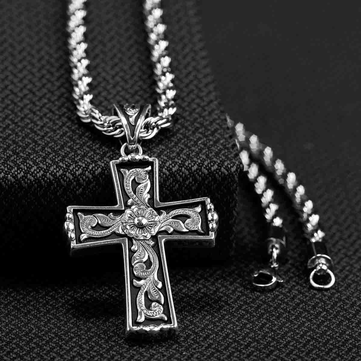 Twister Men's Silver Western Scroll Cross Necklace