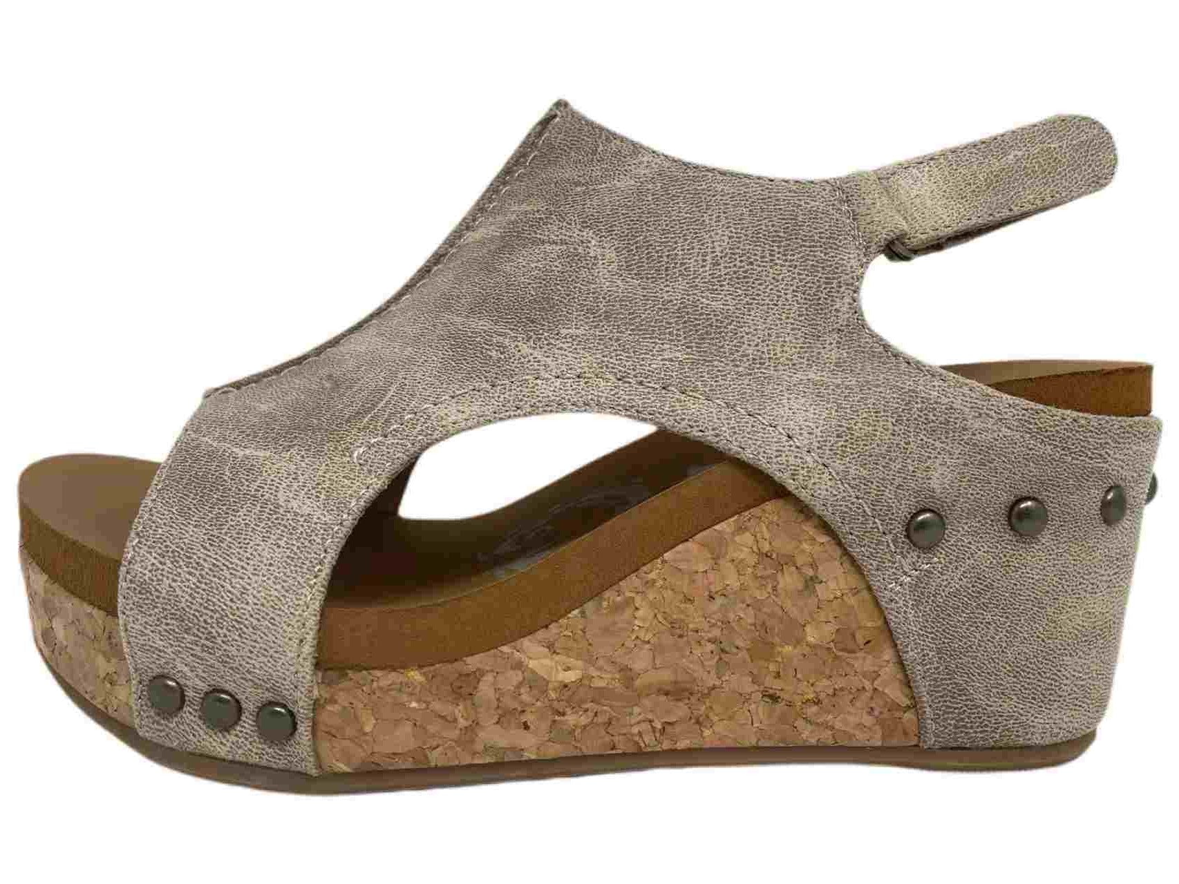 Cream upper with cork accent on the wedge, 1.25 inch platform, three inch heel, adjustable velcro closure, comfortable cusioned outsole.