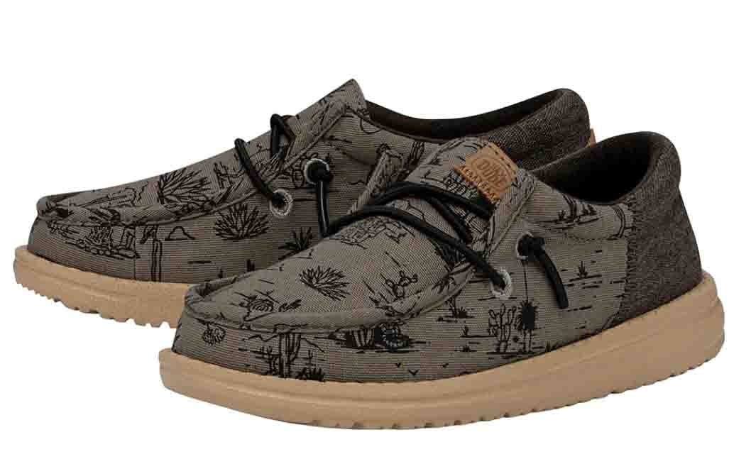 Wanted: a frontier-worthy shoe that stands up to sand and dust. Found: Wally Desert. Cushioned with a removable foam insole and lightweight outsole, this textile moc is made for late-summer missions and early-fall feet. Ready for the littlest cowboys.