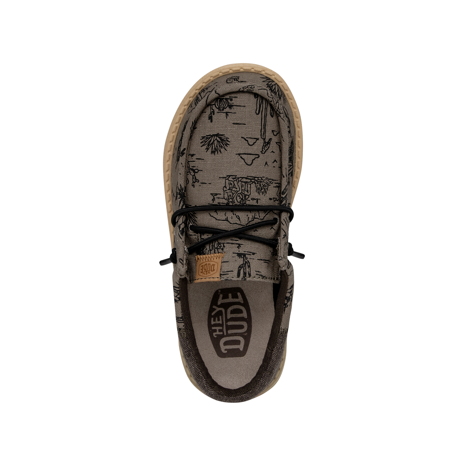 Wanted: a frontier-worthy shoe that stands up to sand and dust. Found: Wally Youth Desert. Cushioned with a removable foam insole and lightweight outsole, this textile moc is made for late-summer missions and early-fall feet. Ready for the littlest cowboys.