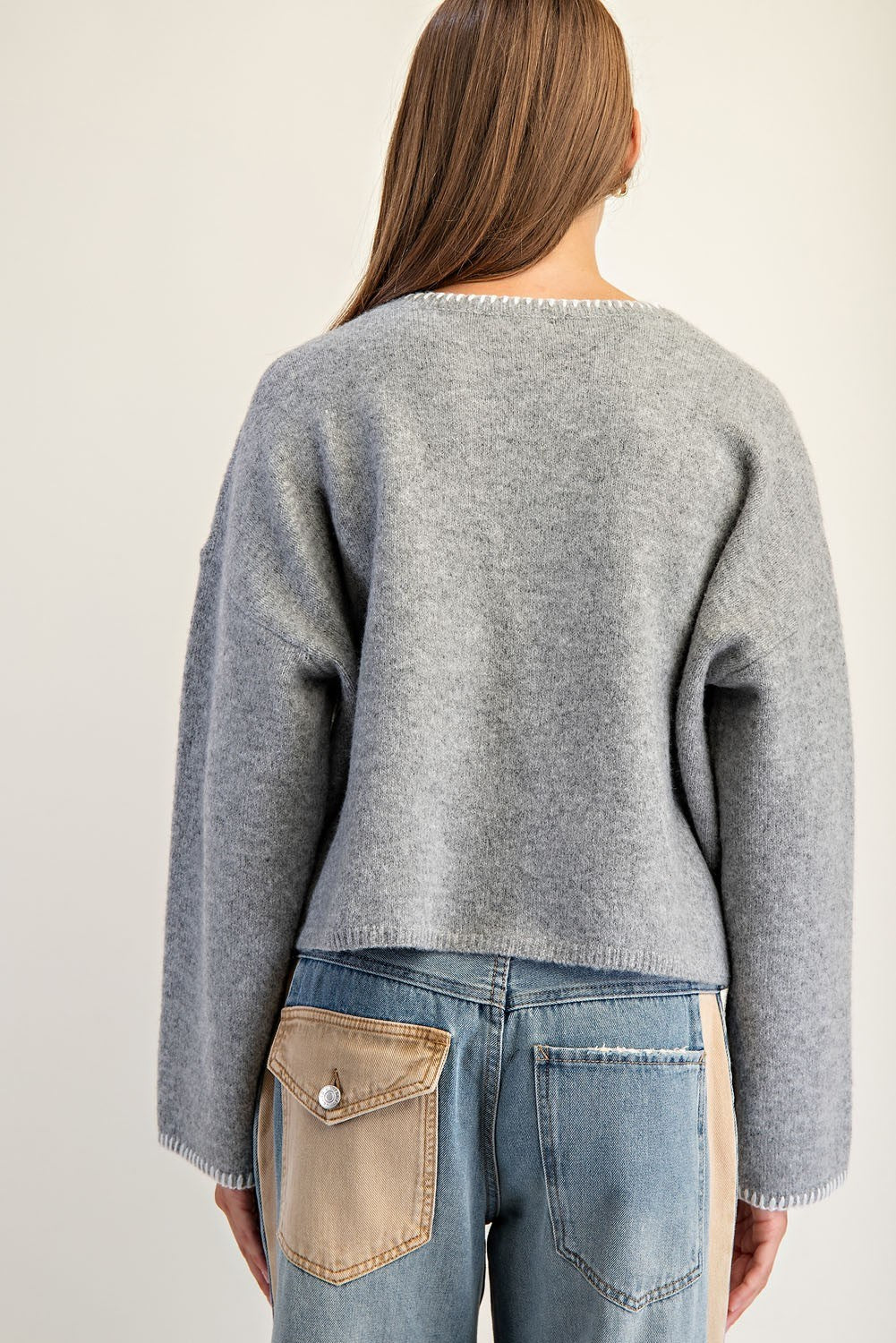Whipstitch Patch Pocket Long Sleeve Sweater by ee:some