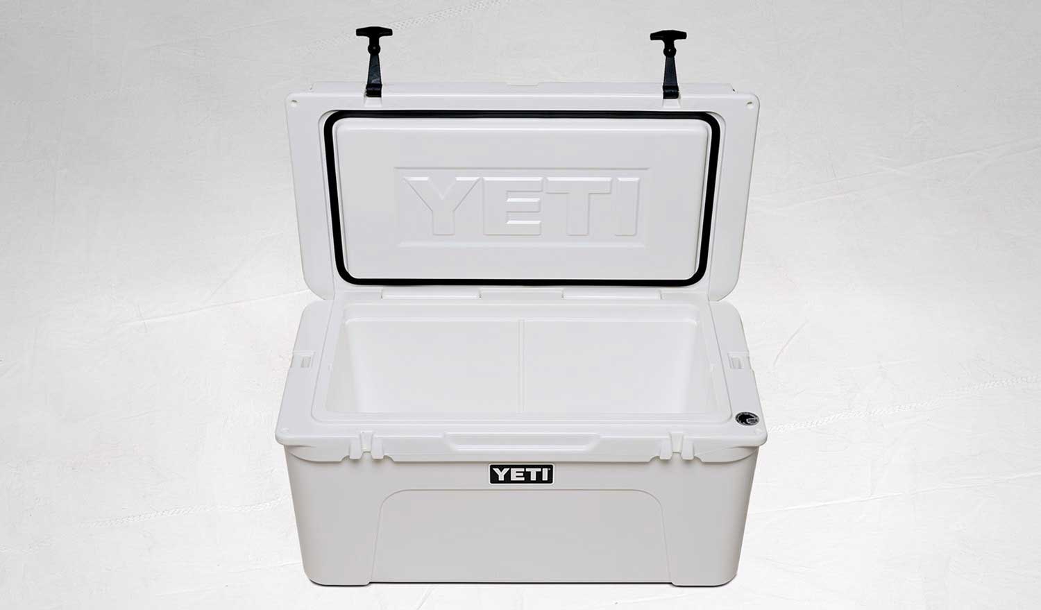 Holds 39 cans, 56 lbs of ice, capacity 14.3 gallons.