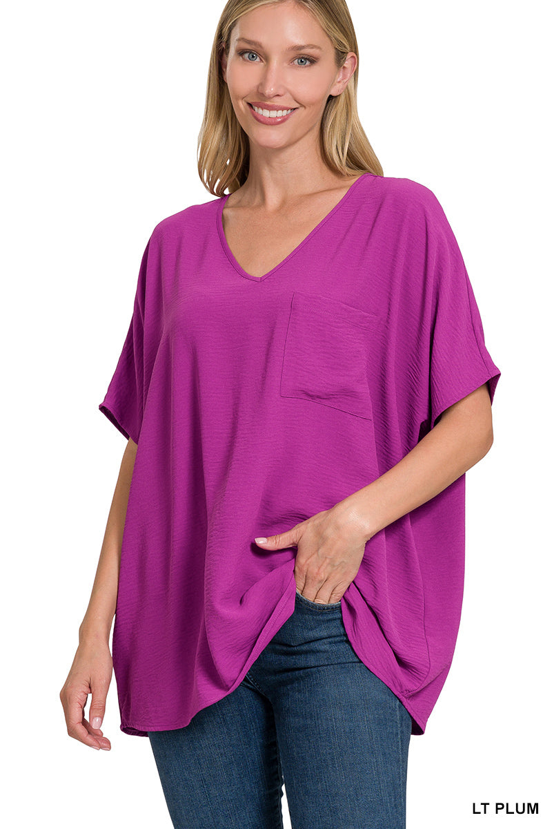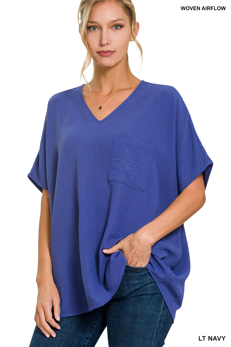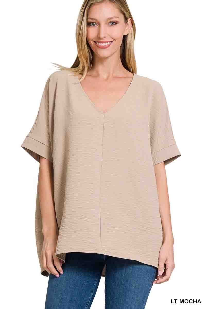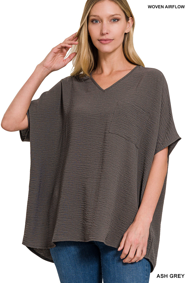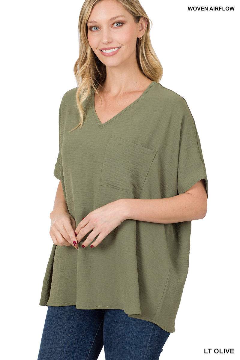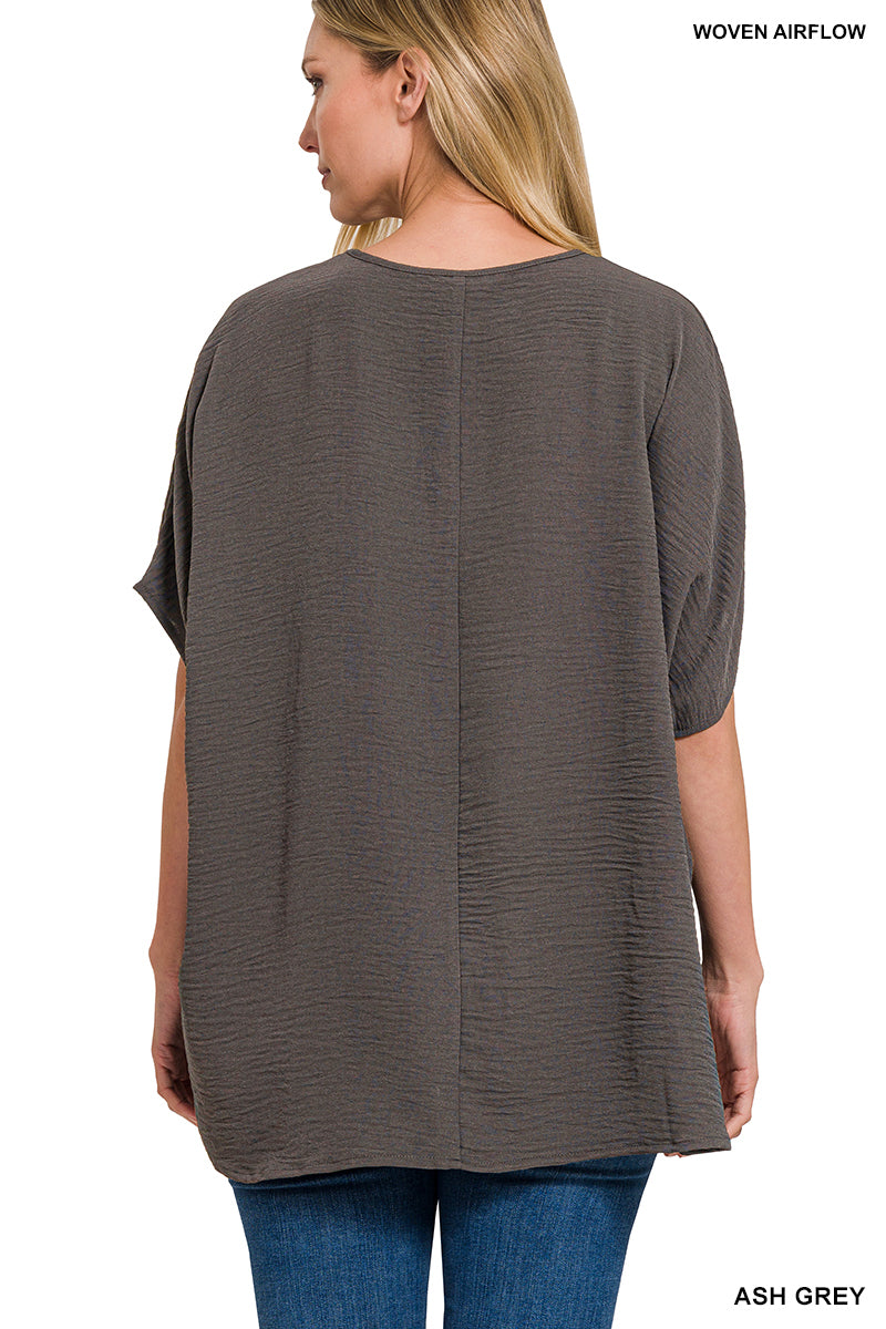 Woven Airflow V-Neck Dolman Short Sleeve Top